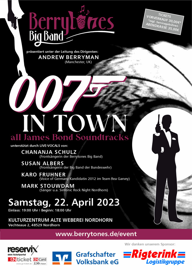 Pünktlich zum Weihnachtsevent "Let`s swing for Xmas" in der Alten Weberei und somit rechtzeitig als tolles Weihnachtspräsent erschien die schon lange erwartete 2. CD der Berrytones. Die CD mit den besten Soundtracks der James-Bond Filme unter Beteiligung der...